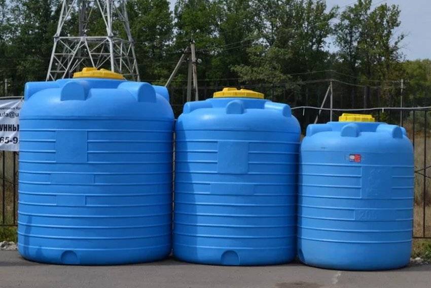 Пластиковая емкость, а насос находится на дне, прямо в том месте, где из воды торчит труба