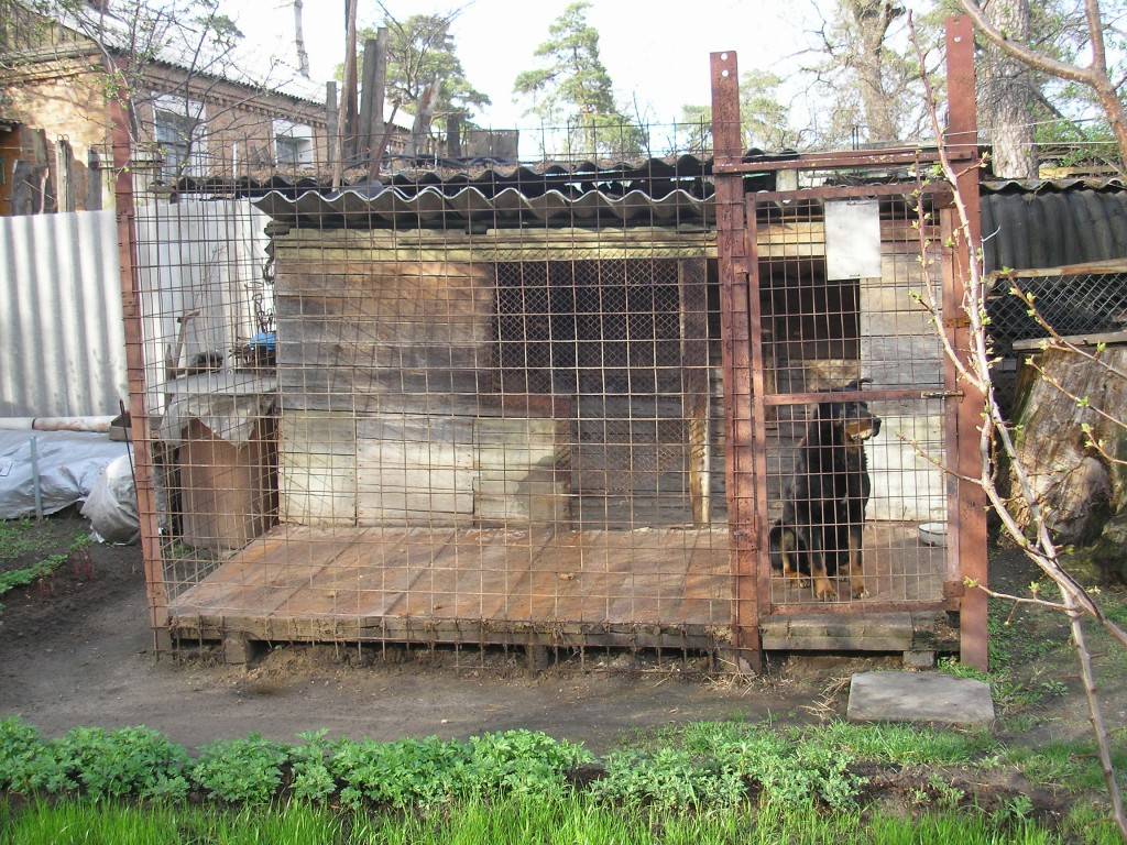 Оптимальный вариант – выполнить три стены из металла или дерева, а для одной использовать сетку. Многие в качестве сетки используют сетку-рабицу, и это, конечно, экономно, но собаки любят грызть рабицу, портив тем самым зубы, так что лучше не скупиться.