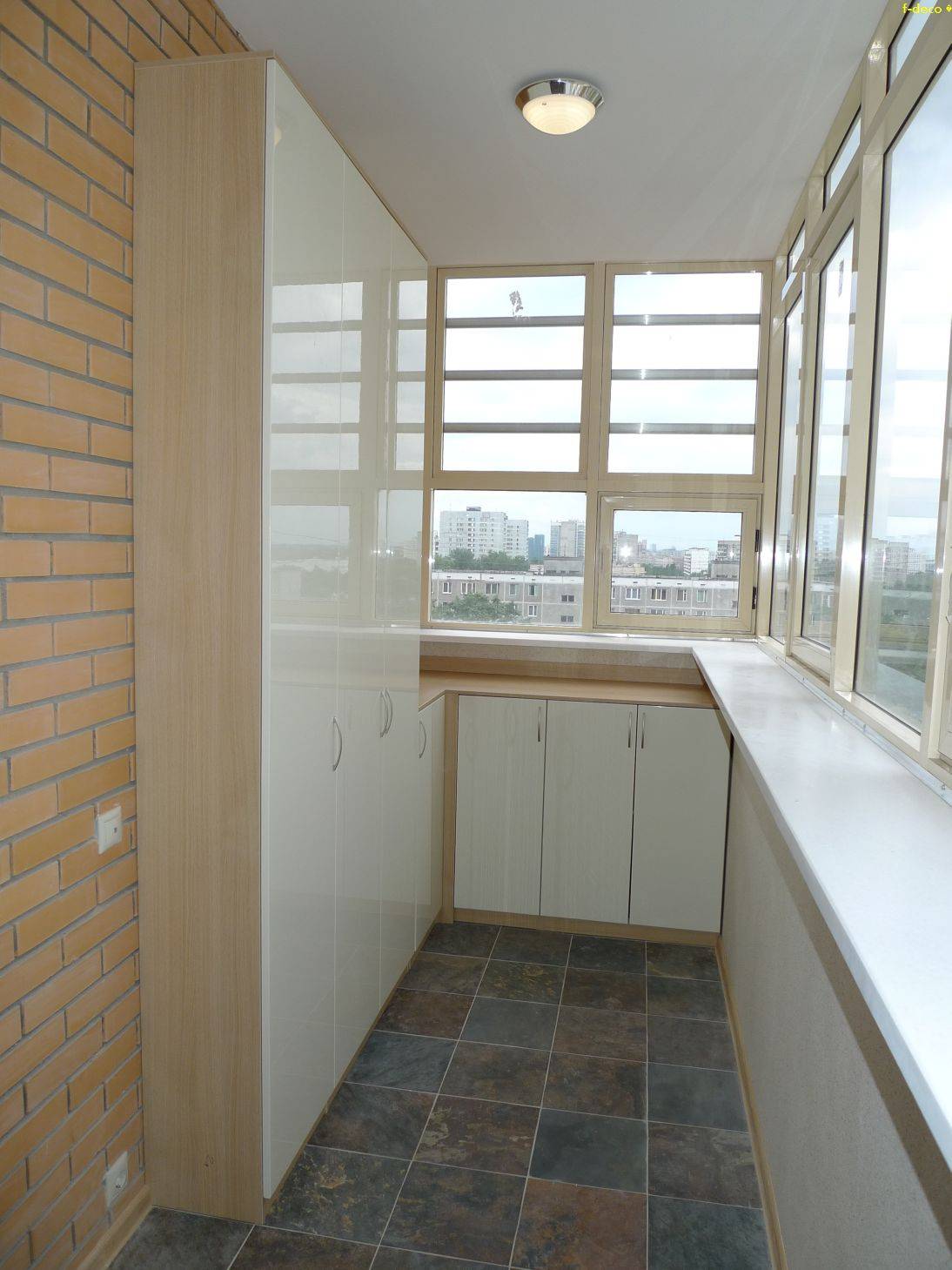 Для холодных балконов также предлагаются варианты встроенной мебели, изготовленной из металла или пластика. Часто такие шкафы дополняются обогревательными элементами, что позволяет хранить в них вещи или продуктовые заготовки даже зимой.