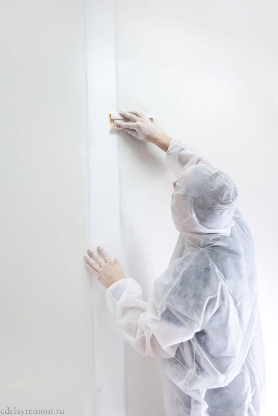 - шлифовка стен при помощи наждачной бумаги, специальной сетки для удаления шероховатостей после высыхания шпаклевочной смеси.