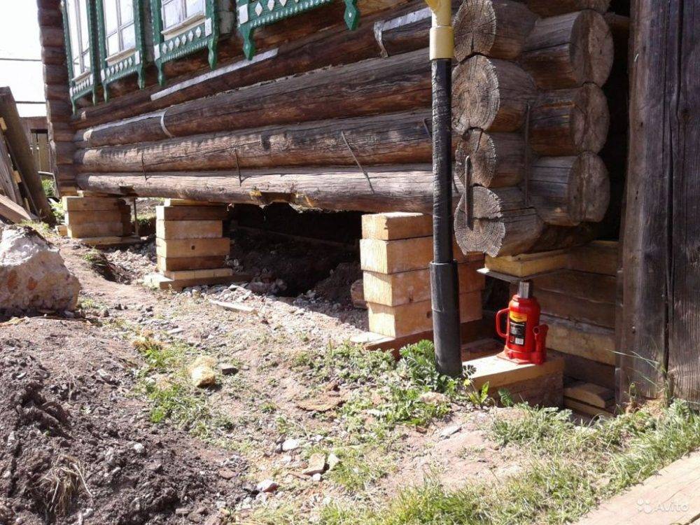 Ремонт бетонных и кирпичных зданий провести более сложно из-за тяжелых коробок помещения. Реконструкция фундамента деревянного дома проводится в разы легче. Каркас деревянного жилища поднимаются очень просто при помощи домкратов. Процедуру не усложнит даже временная потеря жесткости бревенчатым срубом.
