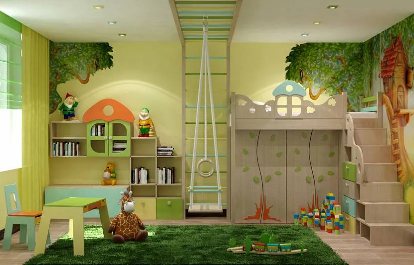 Зеленый цвет в интерьере детской