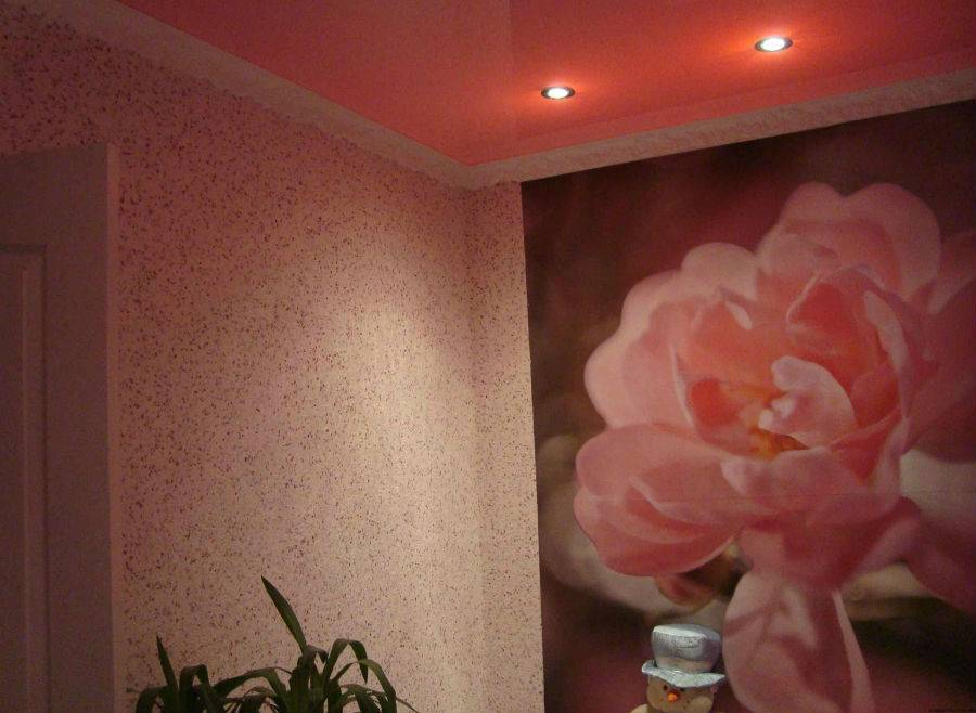 — как только потолок высохнет, можно приступать к жидким обоям.