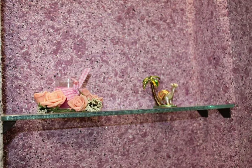 - В любой момент можно провести ремонт повреждённого в процессе эксплуатации участка стены или потолка. Распылите воду на поверхность и пройдитесь по участку шпателем.