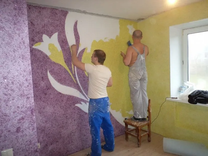 - Материал готовый к нанесению на поверхность. В него лишь добавляется вода. Далее начинается оформление стен. Подобный процесс по силу дилетанту. Особые навыки не нужны.