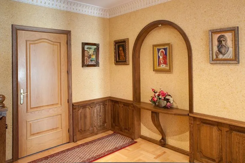 Приятно, зайдя в прихожую, вдруг очутиться в атмосфере мягкого тепла, рассеянного «тканевым» покрытием успокаивающего света. Жидкие обои в коридоре более иных отделочных покрытий способствуют снятию внутреннего напряжения, психологической настройке на домашнюю обстановку.