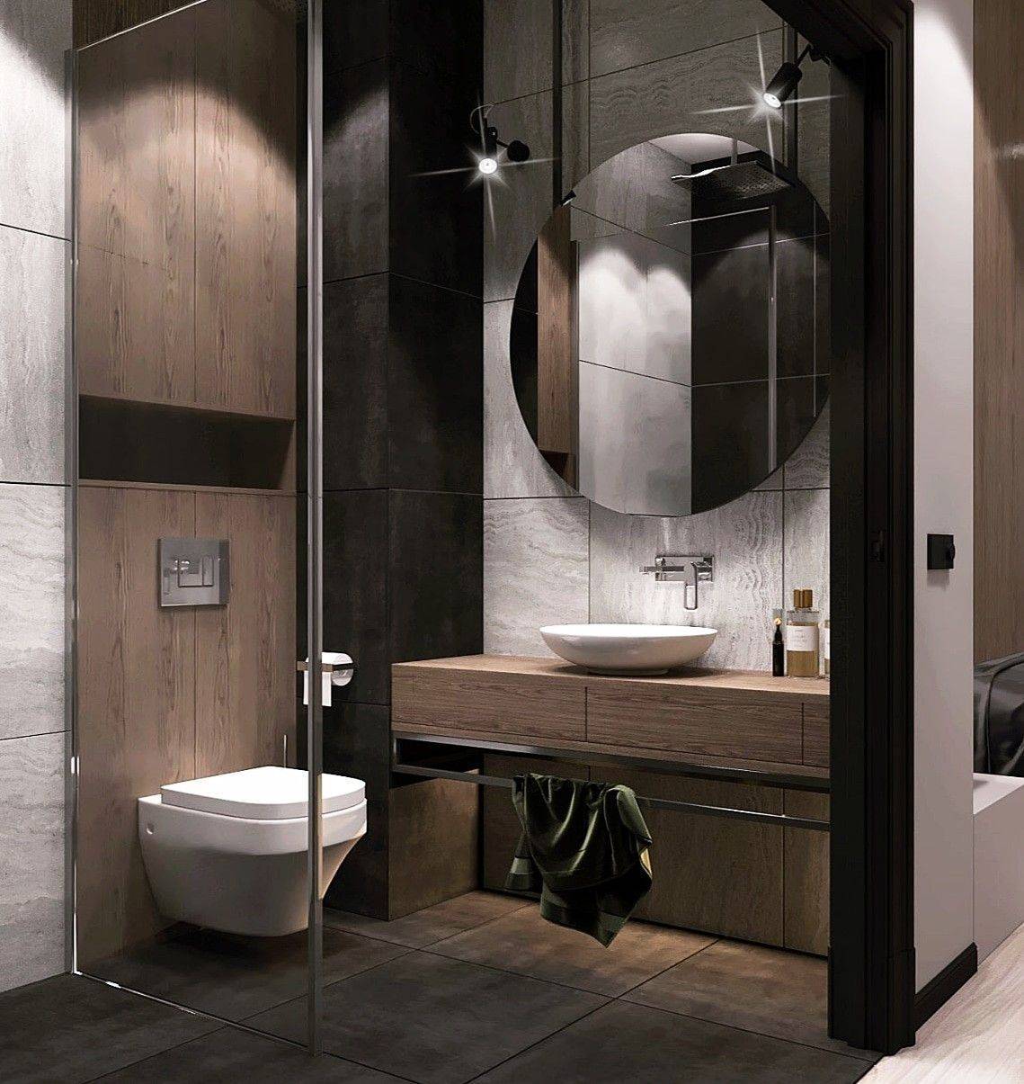 Несколько оттенков серого в сочетании с красивыми и живыми линиями станут неотъемлемыми элементами ванной хай-тек