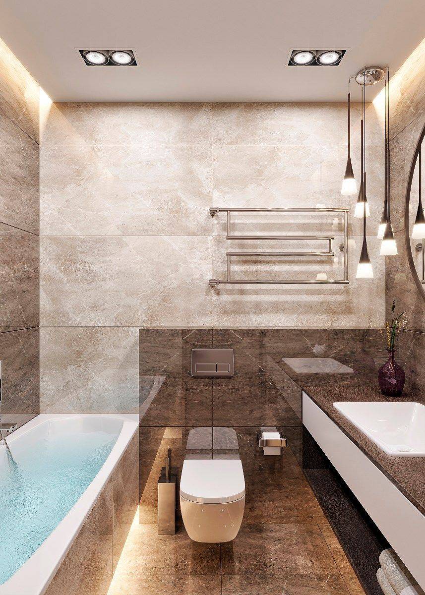 Не менее интересны и важны освещение и цветовая гамма интерьера. Именно они очень часто определяют привлекательность помещения и влияют на ваше самочувствие во время пребывания в нем. Светлые тона оптически увеличивают пространство, а расставленные в разных местах точки освещения скрашивают интерьер. Большие форматы плитки также работают в пользу интерьера. Важным элементом дизайна туалета является правильное освещение. Помимо светильника, который является источником общего света, стоит выбрать дополнительную лампу у зеркала над раковиной, например, бра или лампочку на длинном кабеле.